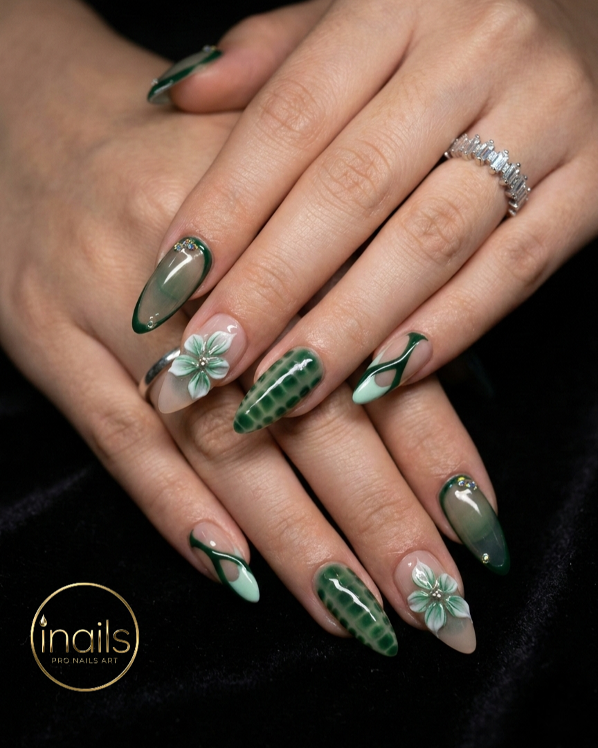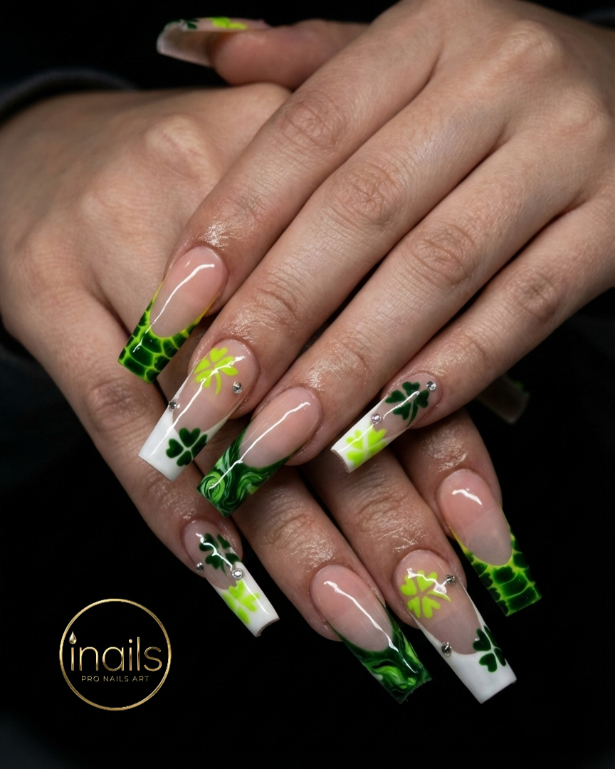 Celebrate St. Patrick’s Day in style with trending nail art at iNails Sevierville. This update highlights festive looks that go beyond basic green, including vibrant emerald sets with precise shamrock details, modern French tips with seasonal accents, and clean, polished designs that feel both classic and current. Ideal for guests who want a refined holiday manicure with professional craftsmanship and long-lasting shine.